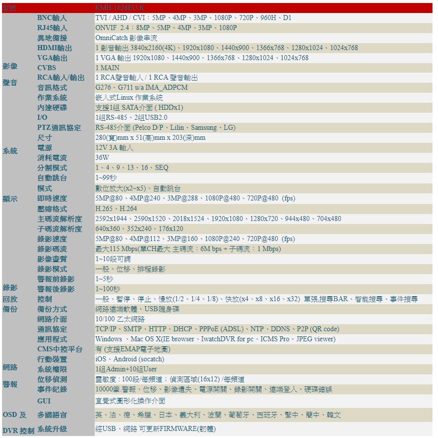 H.265壓縮:畫質清晰、錄影時間長、傳輸速率快。4K超高畫質輸出、4K模式下5MP全接滿建議選擇KMH25系列。